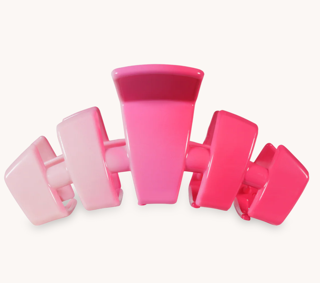 Say goodbye to breakable hair clips! We have perfected the hair tie and now have re-invented the clip. Meet the Classic Kiss & Tell Large Claw Hair Clip in Pink, crafted to elevate any hairstyle with the ideal blend of style and function. Hand-sprayed for a one-of-a-kind pink ombré—expect slight variations in each clip.