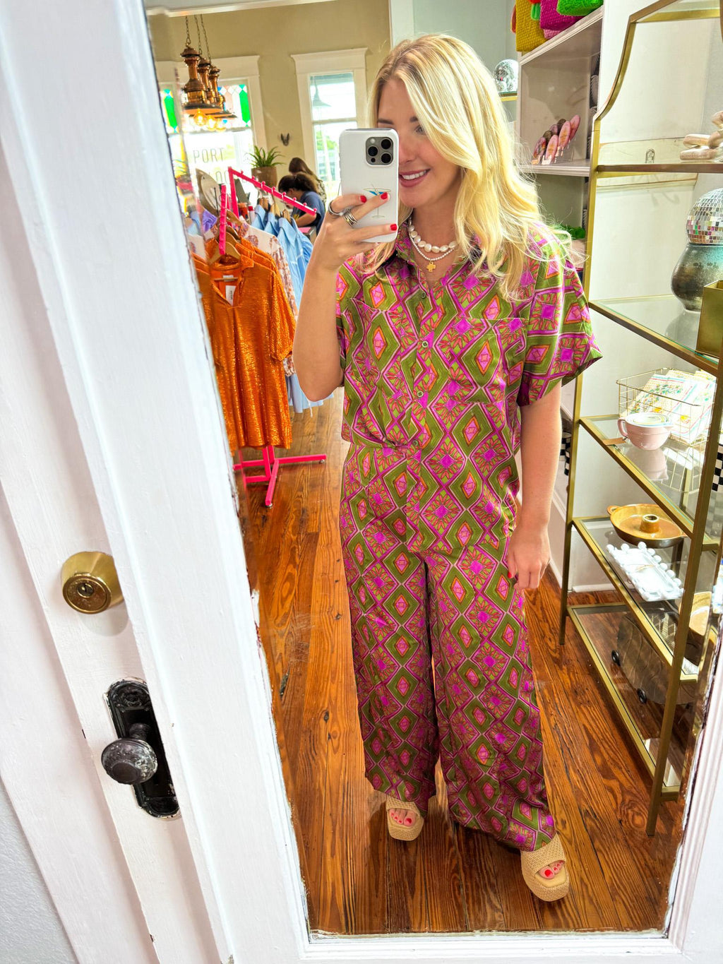 Abstract Olive + Purple Pants. FINAL SALE
