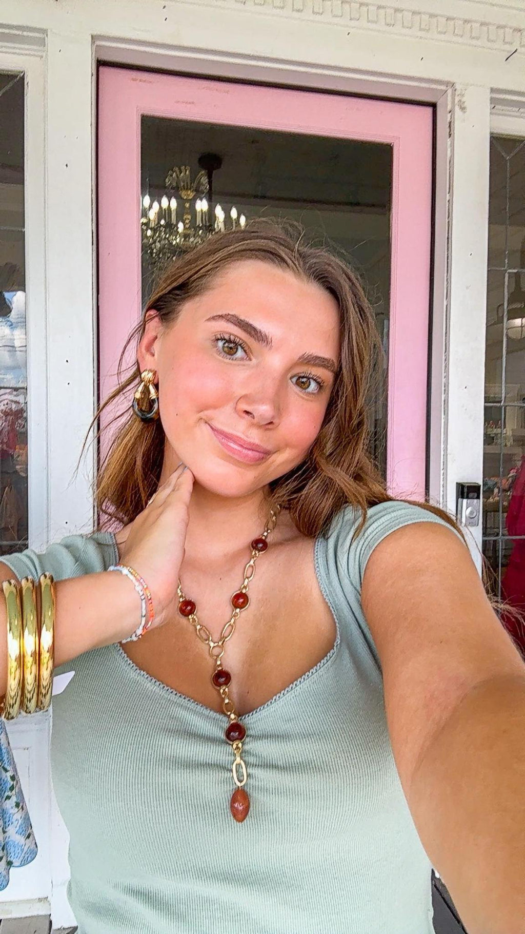Tortoise/Gold Pearl & Oval Chain Y Necklace Set