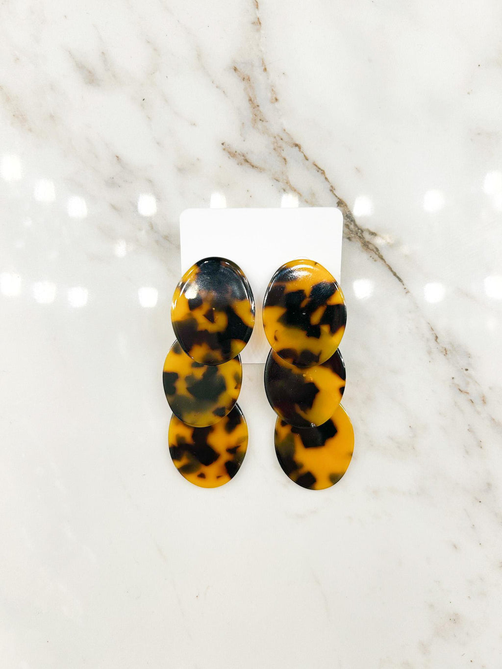 Tortoise Acetate Oval Plate 3 Drop Earrings