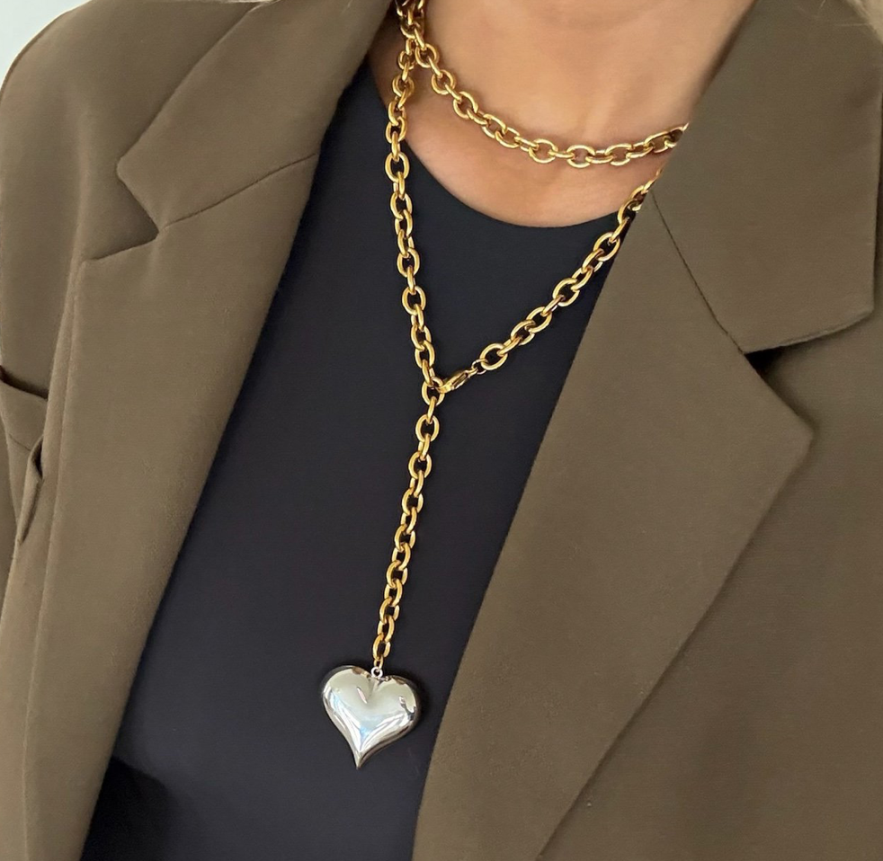 Two Toned Heart Necklace, WATER RESISTANT + LIFETIME WARRANTY