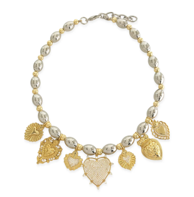 Two Tone Heart Charm Necklace