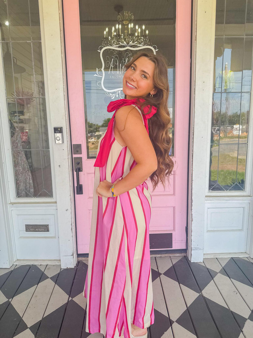 The Carly Cream/Pink Striped Dress