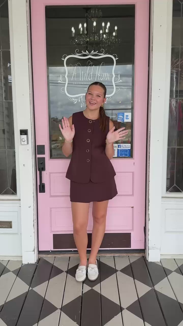 Solid sleeveless round neck romper featuring gold rim accent button closure and concealed side zipper. Lined. Woven. Non-sheer. Lightweight.