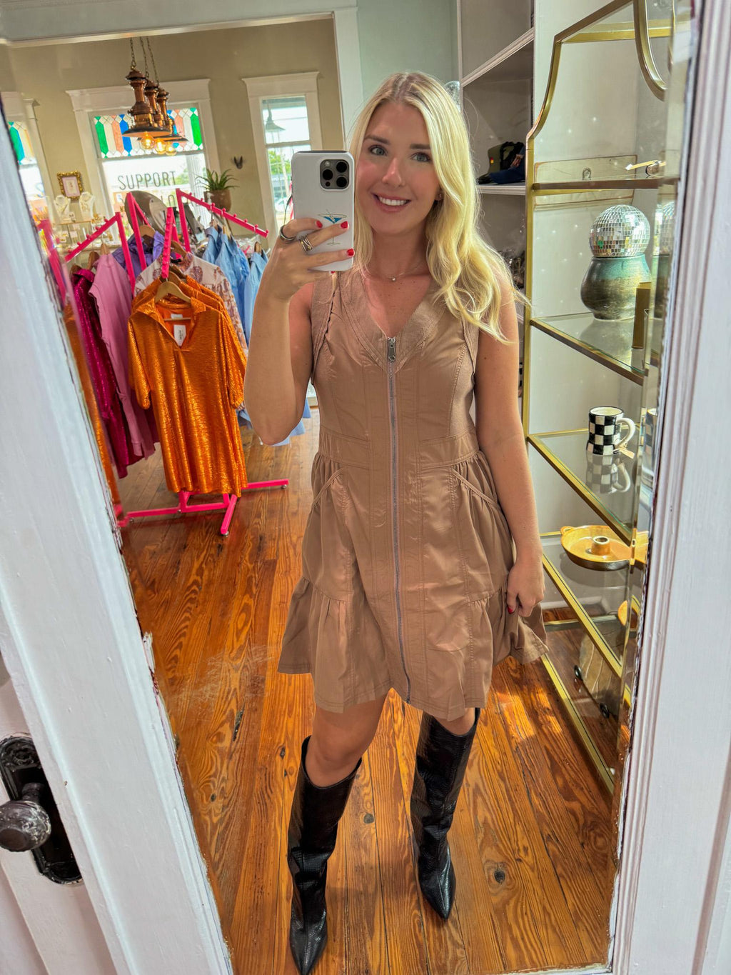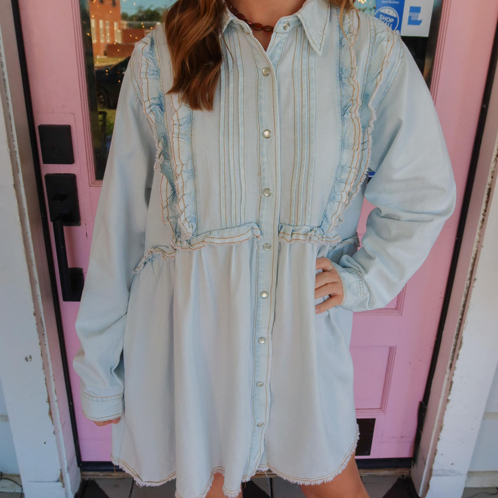 Mineral Washed Pintuck & Ruffle Detail Shirt Dress