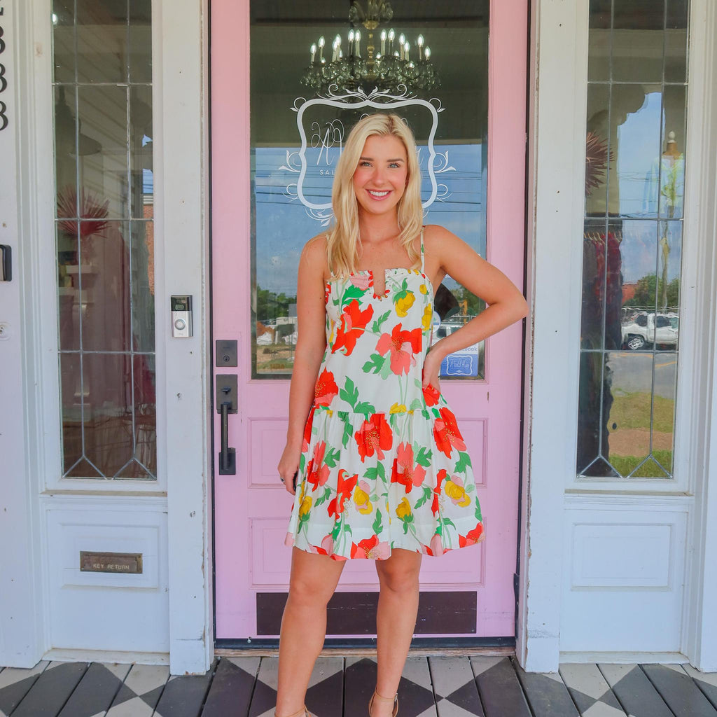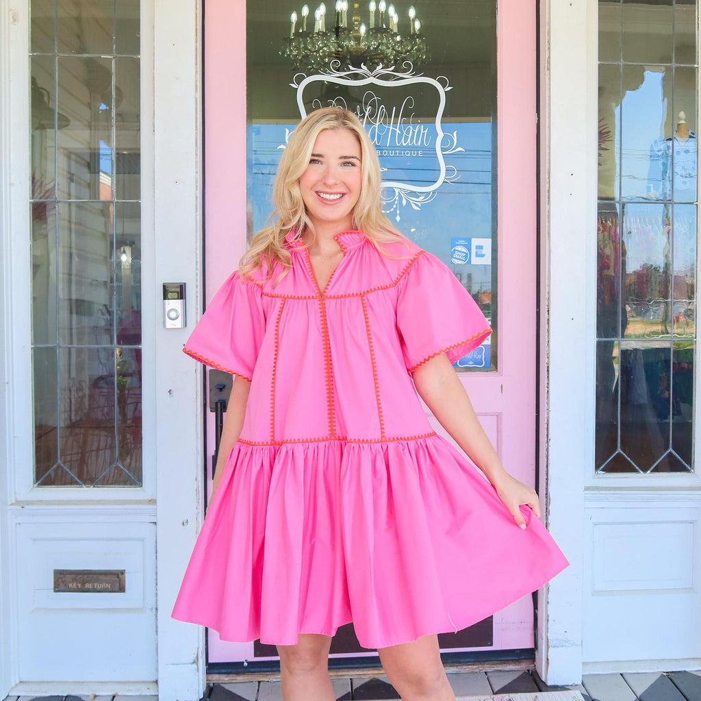 Karlie Pink/Orange Embroidered Tiered Dress. FINAL SALE.