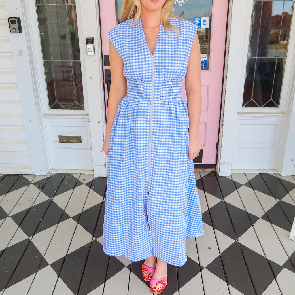 Gracie Gingham Blue Midi Dress. FINAL SALE