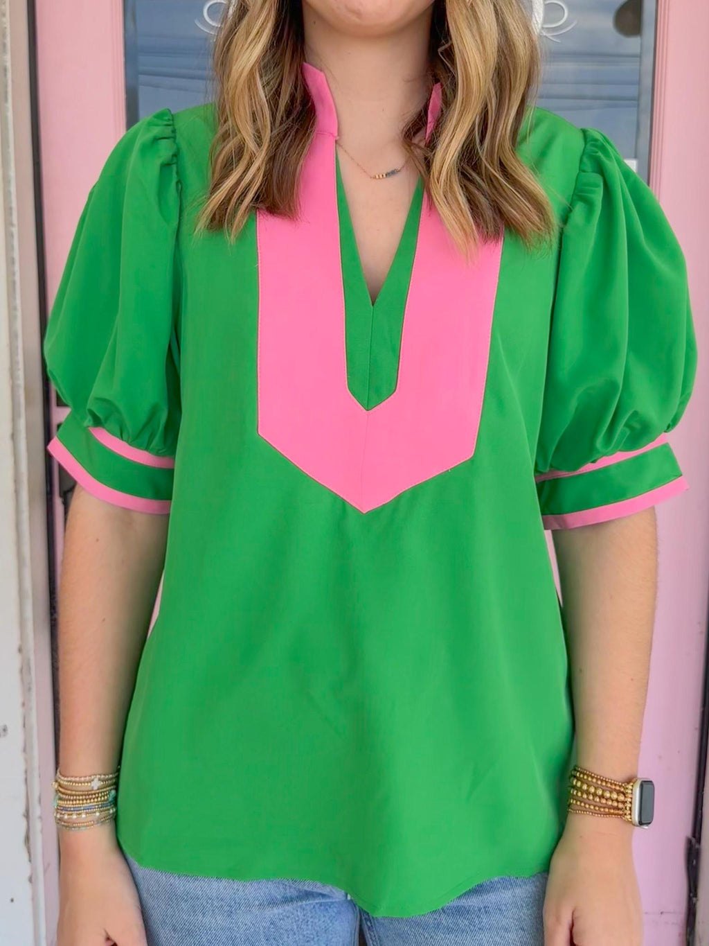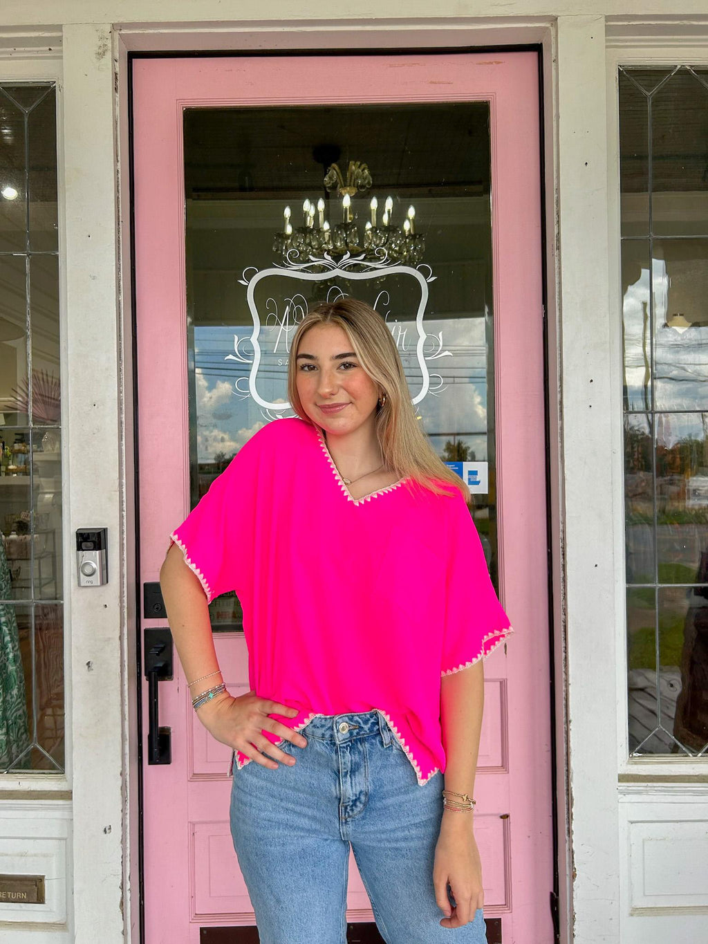 The Hallie Shell Stitch Hot Pink Top. FINAL SALE