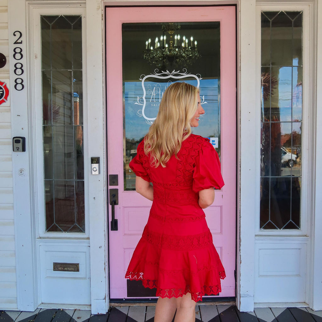 Karlie Solid Red Lace Trim Dress! FINAL SALE
