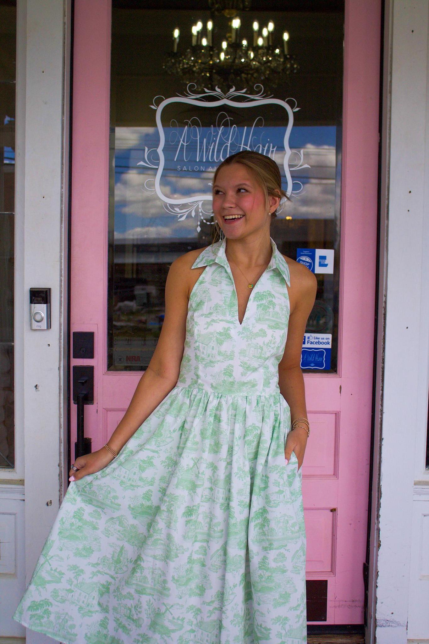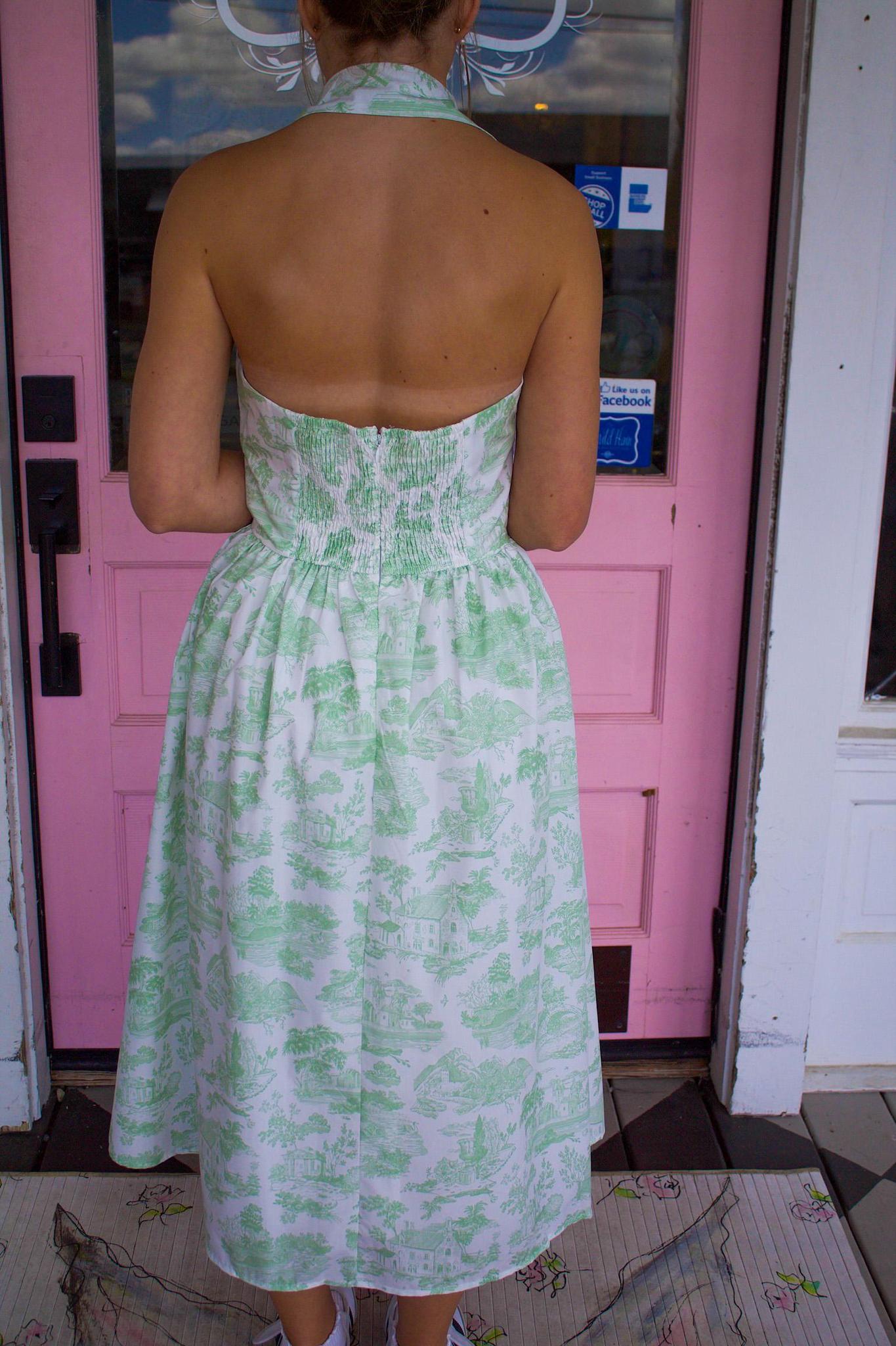 Green + White Floral Halter Neck Dress