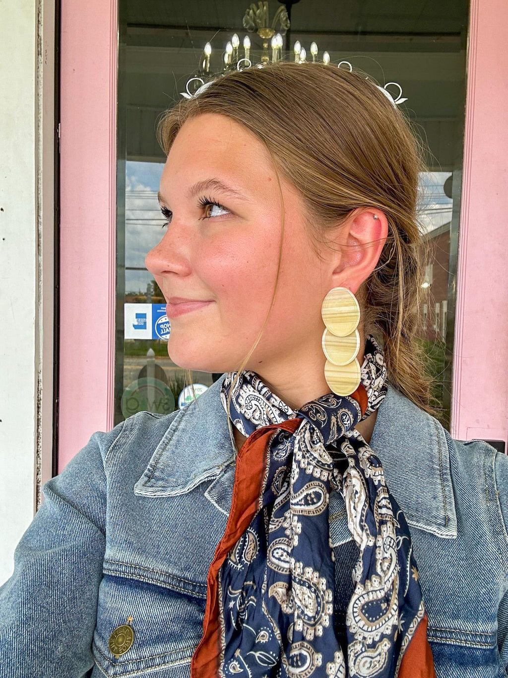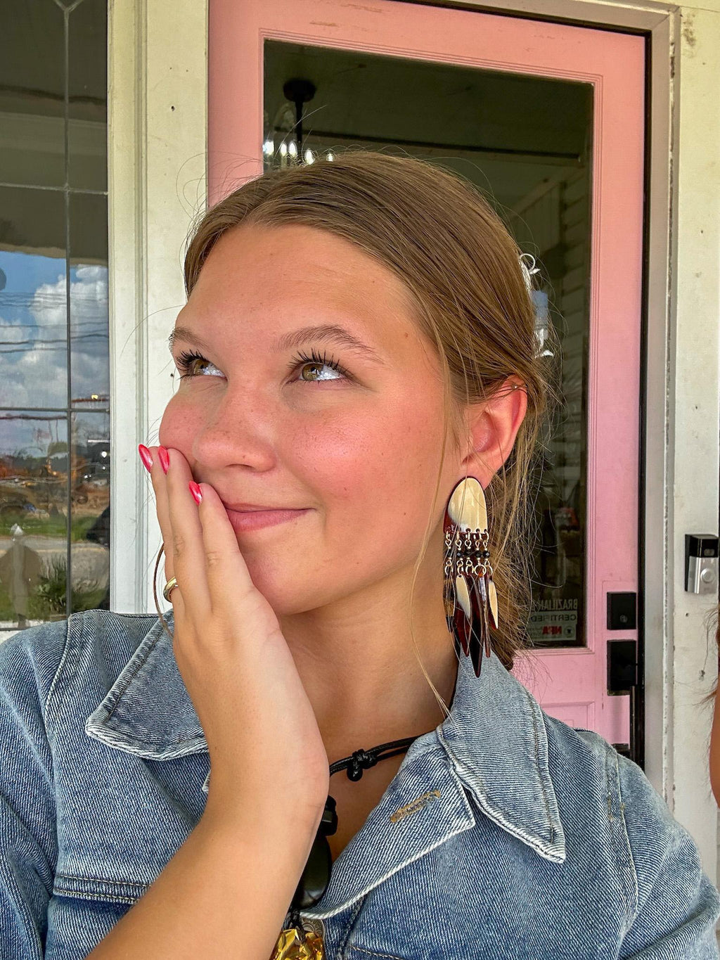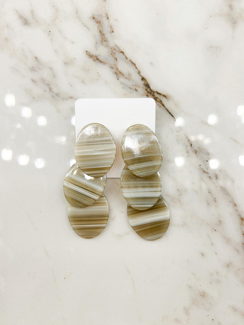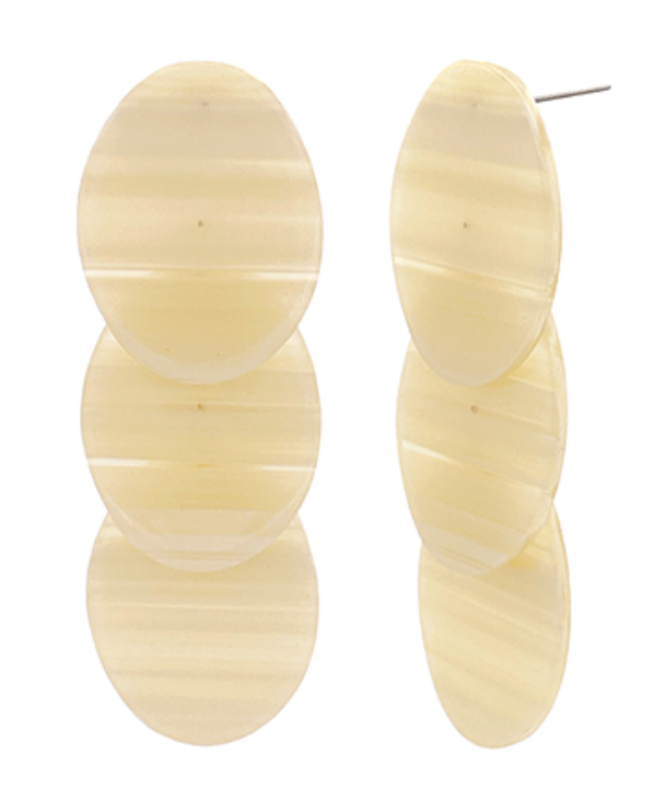 LT. Beige Acetate Oval Plate 3 Drop Earrings