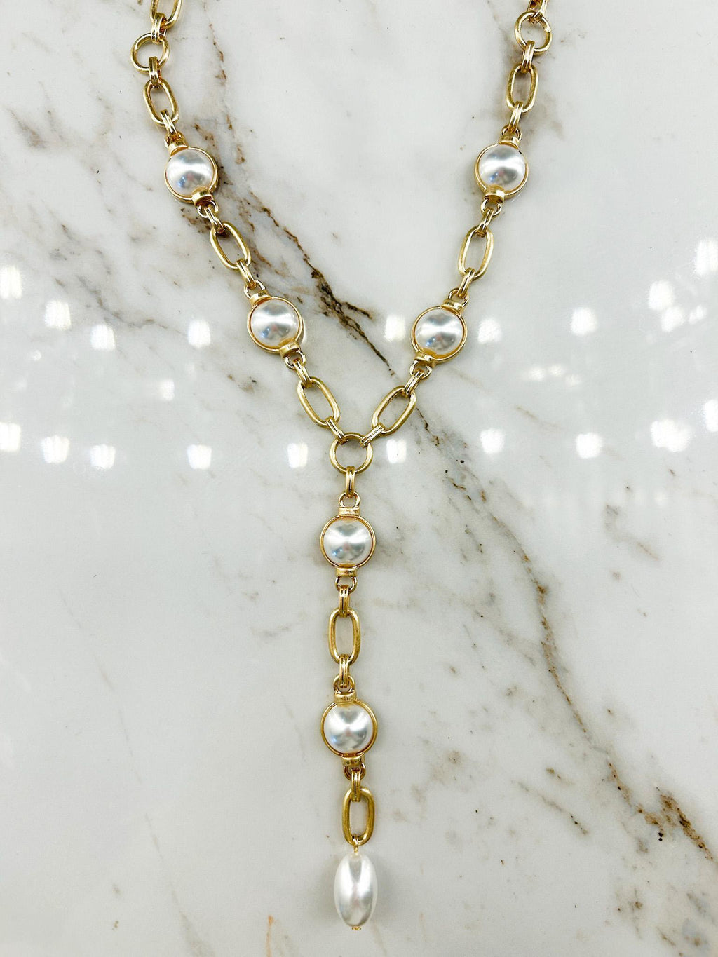 Cream/Gold Pearl & Oval Chain Y Necklace Set