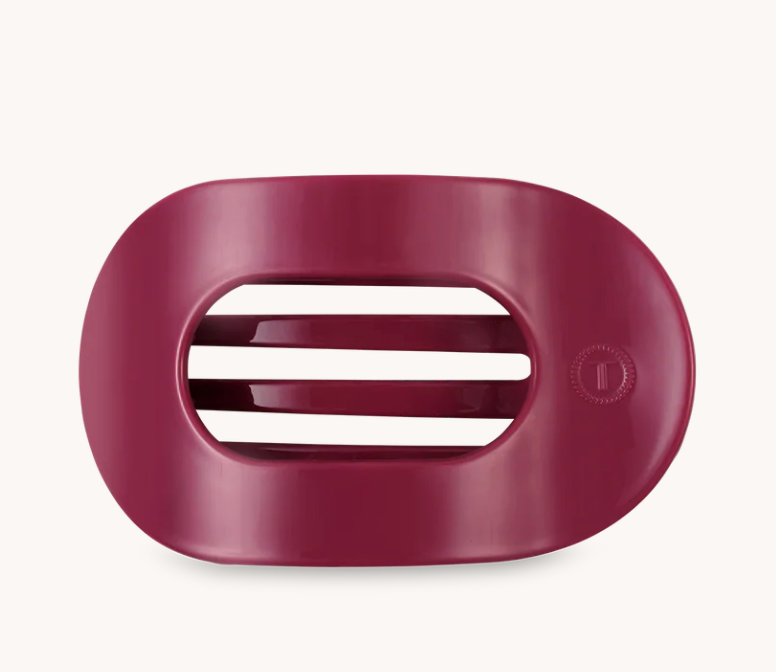 Lay flat and relax with the new TELETIES Wild Side Small Flat Round Hair Clip in Deep Magenta. This hair clip is designed to allow you to lay back flat, do yoga, or sit comfortably in a seat with a headrest, and it is made with the same material that is nearly unbreakable.