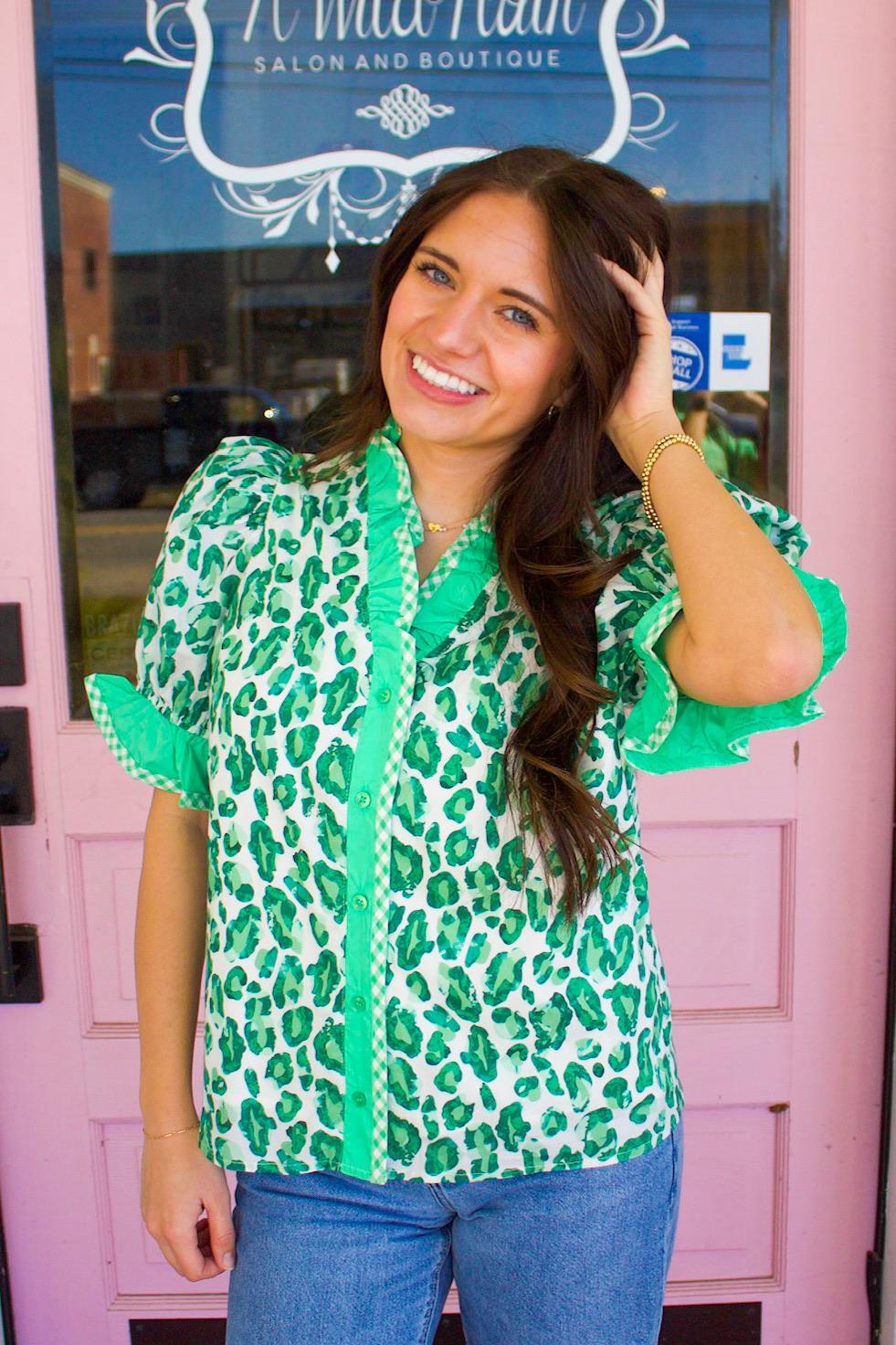 Ruffle Layered Flutter Sleeves Contrast Piping Top