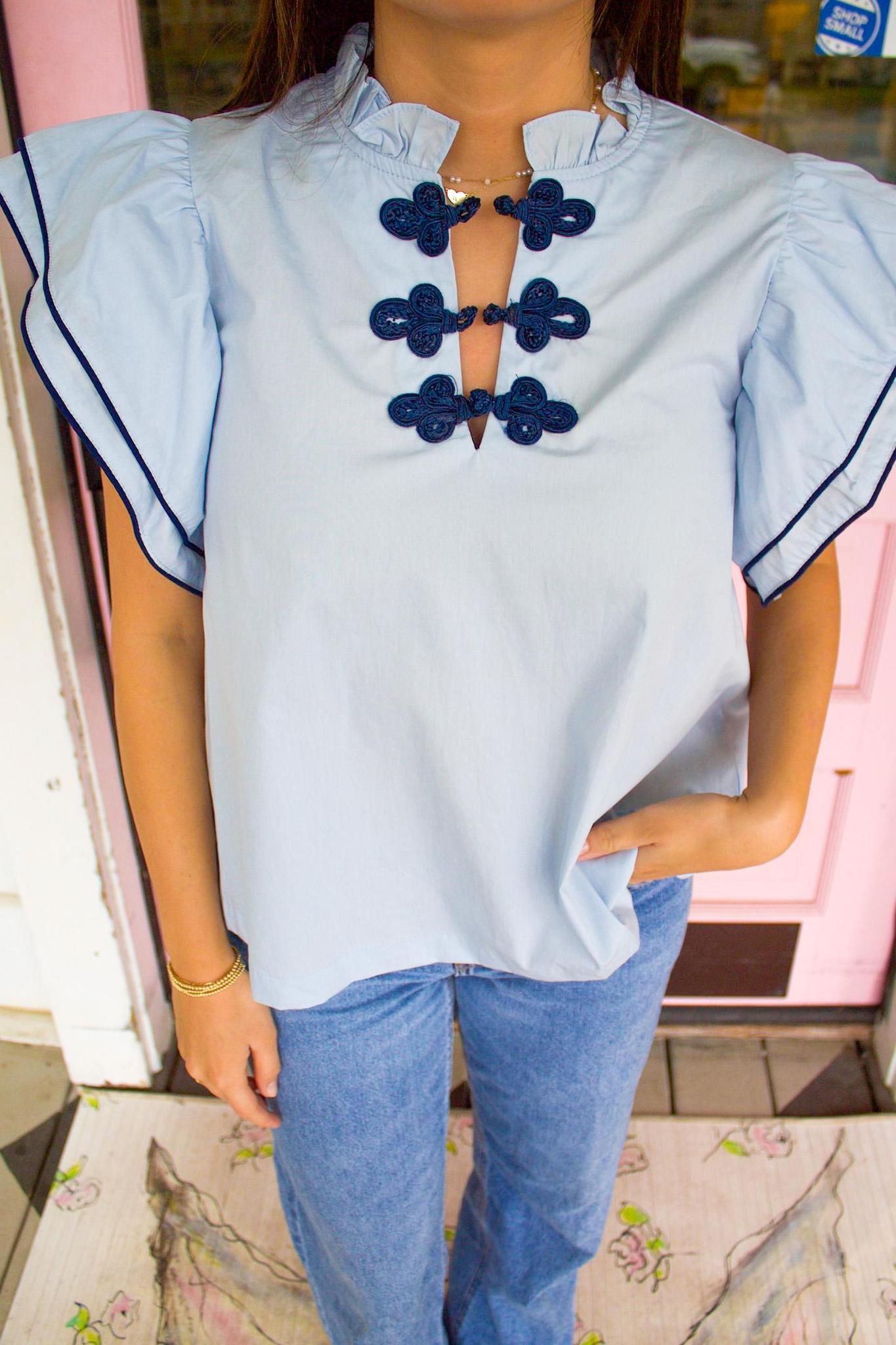 Ruffle Layered Flutter Sleeves Contrast Piping Top