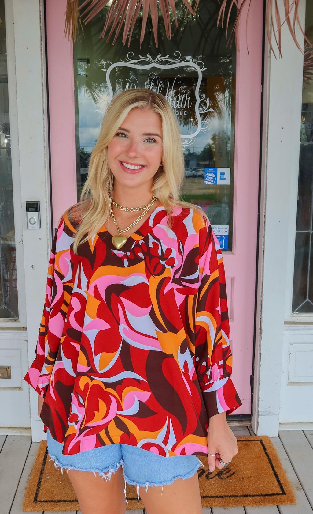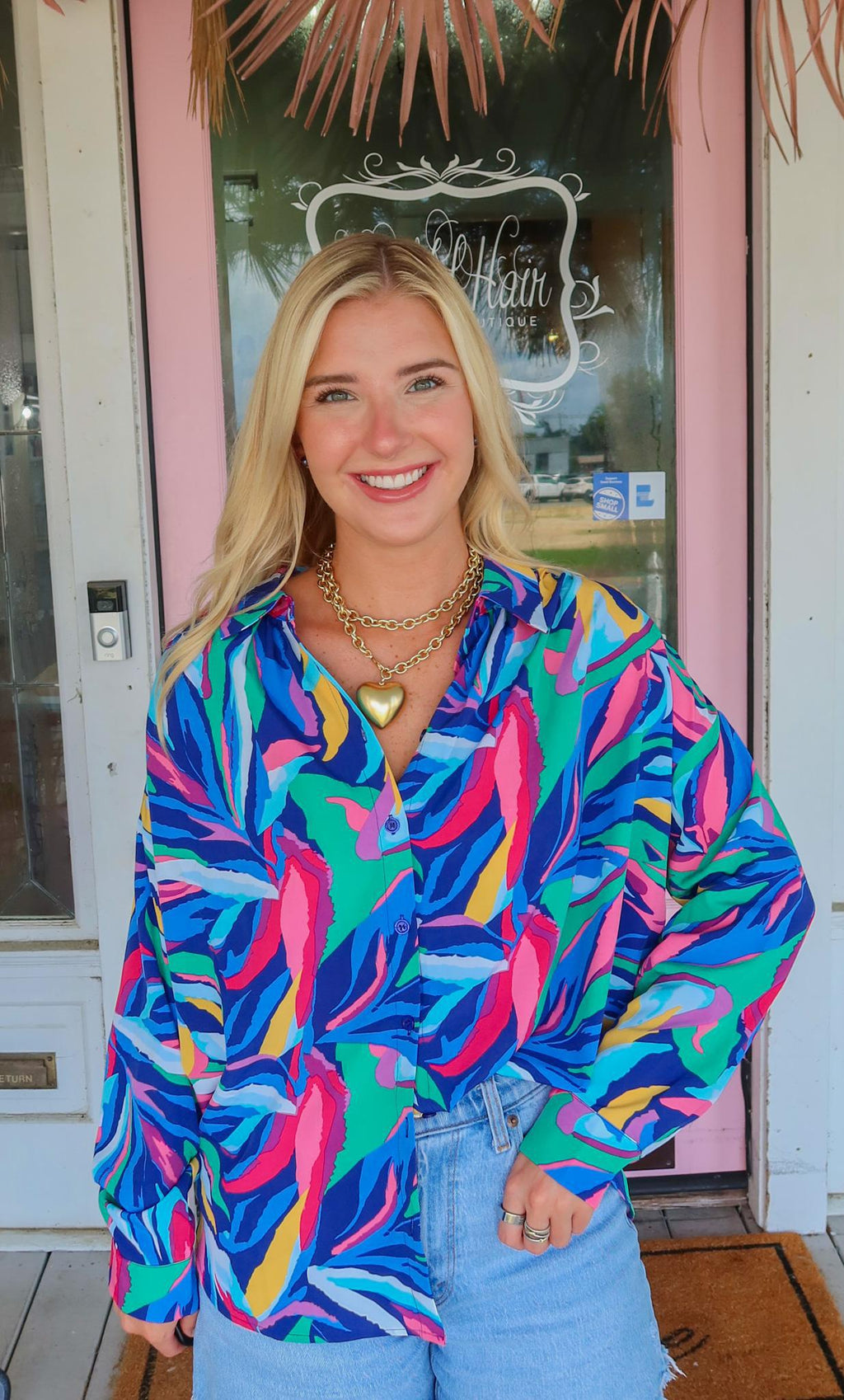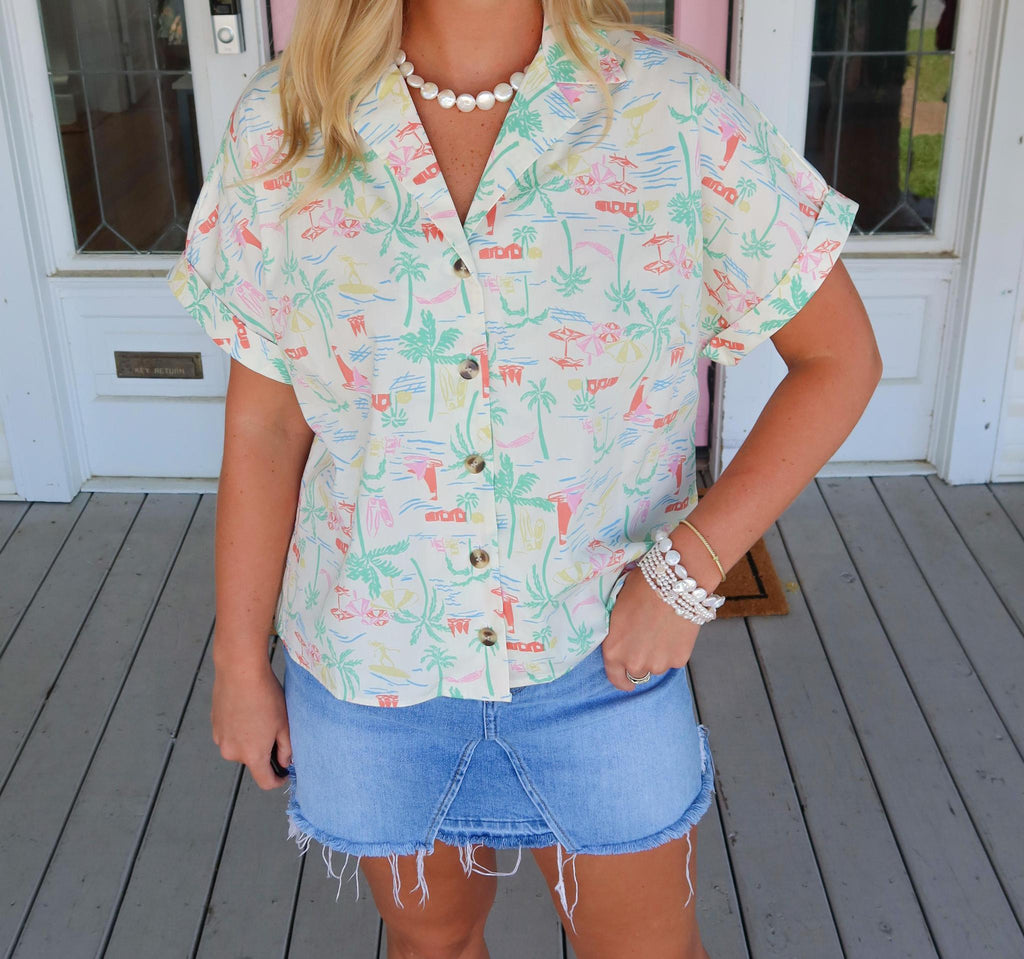 Karlie Seashore Vneck Button Up Top. FINAL SALE.