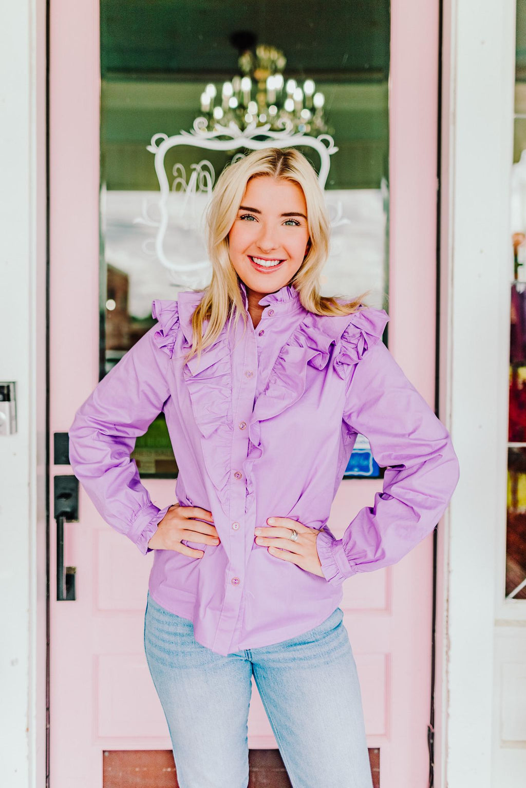 Karlie Lilac Ruffle Button Up Top. FINAL SALE.